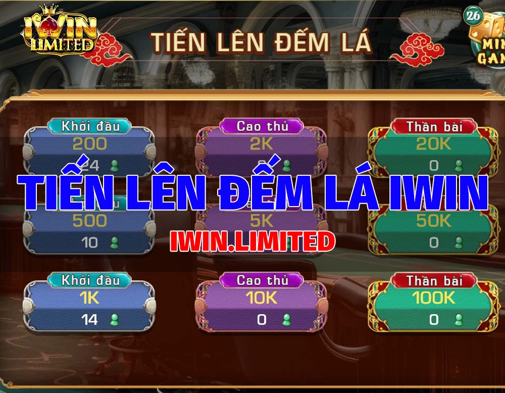 • Bước 5: Lựa chọn biểu tượng game Tiến Lên Đếm Lá và chọn bàn chơi phù hợp. Iwin cung cấp 3 sảnh với 3 mức cược giới hạn khác nhau.