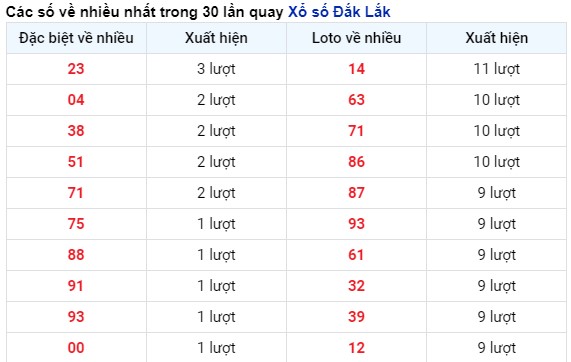 Thống kê tần suất xuất hiện KQXS Đắk Lắk tính tới 21/11/2025