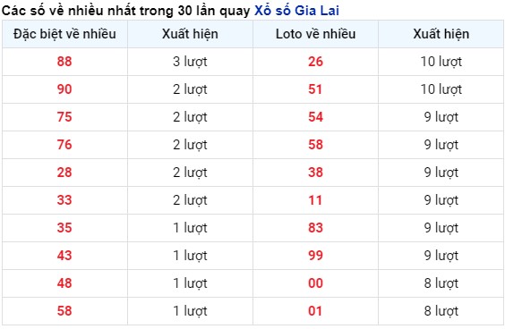 Thống kê tần suất xuất hiện kết quả xổ số Gia Lai tính tới hôm nay