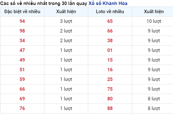 Thống kê tần suất xuất hiện KQXS Khánh Hòa tính tới 21/11/2025