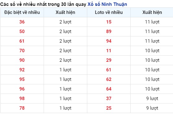 Thống kê tần suất xuất hiện kết quả XS Ninh Thuận tính tới hôm nay