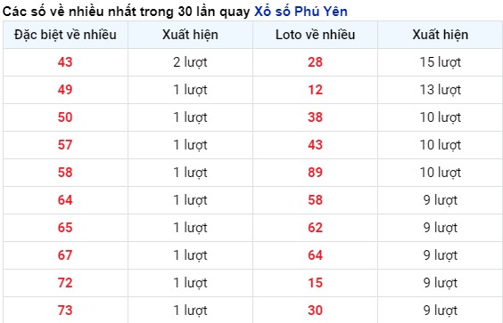Thống kê tần suất xuất hiện kết quả xổ số Phú Yên tính tới 21/11/2025