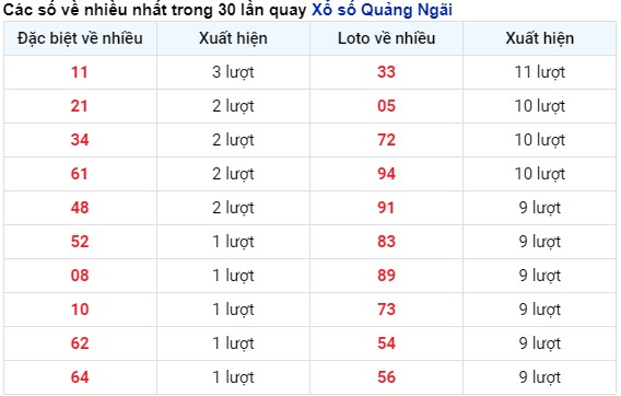 Thống kê tần suất xuất hiện KQXSQNG tính tới 21/11/2025