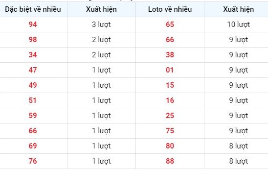 Thống kê tần suất xuất hiện KQXSMT tính tới 21/11/2025